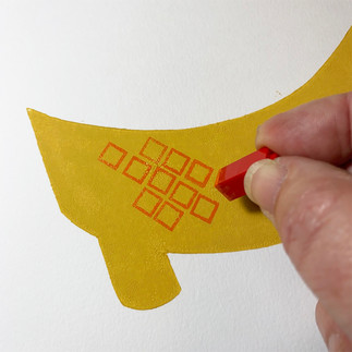 Here are the stages from drawing to woodcut, with linocut and ink stamping all in the mix...